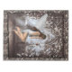 This beautiful angel sits on her Gothic balcony with rose covered archway- a single white dove brings her a red rose - gives a Gothic mystical feel to any room, torn edges on a brocade backdrop