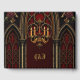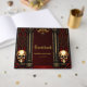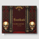 Gothic Archway with Skulls. Set against a mysterious, deep red background, a large Gothic archway rises majestically, decorated with ornate details. The two tall pillars, adorned with delicate carvings, lend the image a poignant elegance. In the middle of the archway shines an impressive stained glass window, the central motif of which is a spider a symbol of patience and creativity. Flanked by two golden skulls, reminiscent of both transience and eternal love, the archway captivates the viewer and promises a celebration full of mystery and fascination.