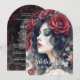 This gothic bridal shower invitation combines sophistication and romance in a unique design, perfect for those who want a celebration with character and personality. The elegant watercolor illustration features an attractive female figure surrounded by red roses, evoking the intensity of passion and the delicacy of nature with a mysterious and enchanting atmosphere.