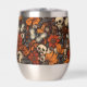 Celebrate pumpkin spice season with a Goth vibe with this design featuring an eclectic mix of autumn leaves, ravens, skulls, moths and pumpkins.