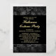 Personalised Gothic Black Damask Halloween Costume Gold Foil Invitation.