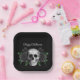 Gothic Black Floral Skull Halloween Paper Plates.