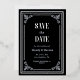 Surprise your friends & family with these elegant Save the Date cards, featuring custom text, black background & silver foil text. Easily add your own details by clicking on the "personalise" option.