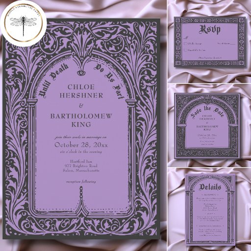 Gothic Black Purple Mediaeval Until Death Wedding Enclosure Card