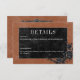 Transport your guests to a world of dark, enchanting elegance with our vintage gothic wedding details card. The deep, aged rust background sets the stage for a striking contrast, as bold white text emerges from intricate black text boxes. At the pinnacle of this invitation, a three-dimensional gothic border adorned with a regal black raven captures the essence of mystery and romance. The back is adorned with two intertwining vines of black roses subtly forming a heart around two embracing ravens, which adds a touch of dramatic allure. Unleash the magic and set the tone for an unforgettable wedding day. This card is part of the Gothic Black Raven & Black Roses Wedding Suite created by Simply Farmhouse Press.