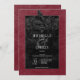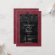 THIS IS AN ALL IN ONE INVITATION WITH ADDITIONAL DETAILS ON THE BACK. Transport your guests to a world of dark, enchanting elegance with our vintage gothic wedding invitation. The Victorian burgundy wine background sets the stage for a striking contrast, as bold white text emerges from intricate black text boxes. At the pinnacle of this invitation, a three-dimensional gothic border adorned with a regal black raven captures the essence of mystery and romance. Unleash the magic and set the tone for an unforgettable wedding day. Created by Simply Farmhouse Press.