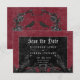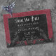Transport your guests to a world of dark, enchanting elegance with our vintage gothic wedding save the date card. The deep, aged burgundy wine background sets the stage for a striking contrast, as bold white text emerges from intricate black text boxes. Three-dimensional gothic elements adorn the design, capturing the essence of mystery and romance. Unleash the magic and set the tone for an unforgettable wedding day. Created by Simply Farmhouse Press.