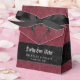 Transport your guests to a world of dark, enchanting elegance with our vintage gothic wedding favor boxes. The deep, aged burgundy wine background sets the stage for a striking contrast, as bold white text emerges from intricate black text boxes. At the pinnacle of this invitation, a three-dimensional gothic filigree heart captures the essence of mystery and romance. The heading, "Darkly Ever After" sets the stage for your unique ceremony. Created by Simply Farmhouse Press.