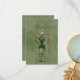 A Gothic design of a green dressed skeleton on a grunge green background.
