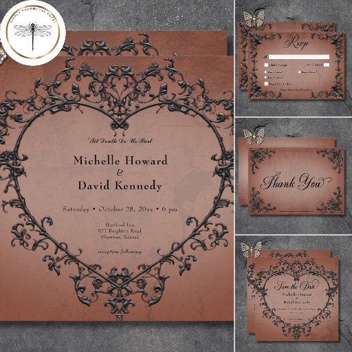 Gothic Black & Rust Filigree Heart Wedding Save The Date