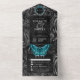 Gothic Black Teal Filigree Moth Dinner Wedding All In One Invitation