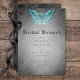 Gothic Black Watercolor Teal Moth Bridal Brunch Invitation
