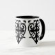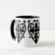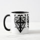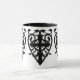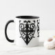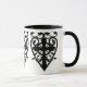 A pretty iron scroll work cross in a romantic heart taken from my photo of an old Victorian crypt door in a cemetery. This makes for an elegant design in black on a mug with black trim.