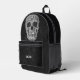 This cool Gothic grunge black and white skull head printed backpack consists of a modern vintage, trendy, scary one-of-a-kind spooky design. Image copyright Marg Seregelyi Photography.
