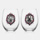 Gothic Couple Skulls and Roses Stemless Wine Glass