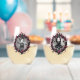 A cute little gothic girl and gothic boy surrounded by a wreath of skulls and pink flowers. On the back you can personalise them with your names. There is a whole set with different girls and boys in the shop. Check it out!