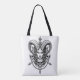 Dark gothic artwork featuring a powerful demonic queen with massive ram horns, surrounded by detailed skulls, chains, and occult symbols. This high-contrast black and white design is perfect for gothic fashion lovers, metal and rock fans, horror art collectors, and alternative streetwear. Ideal for t-shirts, hoodies, posters, stickers, and accessories