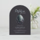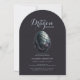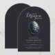 A cute but also goth baby shower invitation featuring "A sweet little dragon will hatch soon" in delicate bluish grey modern typography and stylish script on an anthracite background, plus a sweet drawing from a dragon egg.