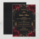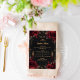 Elevate your reception tables with this Dark Romance Gothic Wedding Menu, featuring a rich black background, refined vintage-inspired details, rich roses, elegant gold frame and elements. Perfect for candlelit receptions, castle venues, and black tie gothic weddings.