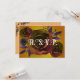 Darkly beautiful black watercolor roses with purple foliage decorate this elegant muted bronze gold gothic RSVP card. The reverse side is the same soft orange with white traditional text adorned with lush black ornate flourish ornaments. Step into a realm where Gothic elements entwine with vintage aesthetics in our Black Gothic wedding RSVP. A celebration of love and darkness awaits, where spirits dance under the moonlight and love's spell knows no bounds.