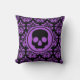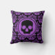 An elegant decorator throw pillow in black and purple damask with a black fanged skull in the centre. Pretty Gothic decor for Halloween or anytime.