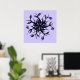 Gothic floral poster with a cool weird mandala illustration - digitally colored ink drawing of a strange flower with reptile monsters with sharp teeth in black, violet and blue colors.