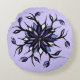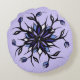 Gothic floral pillow with a cool weird mandala illustration - digitally coloured ink drawing of a strange flower with reptile monsters with sharp teeth in black, violet and blue colours.