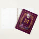 Gothic Floral Skull Magenta Custom Monogram Name Planner. Custom name and monogram gothic planner with skull wearing flower crown surrounded by vintage baroque swirls border, flowers spider web and bats over distressed black background.