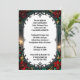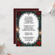 Dark red flowers with gold accents and burning candles surround a black, Gothic frame on this beautiful holiday party invitation.