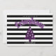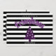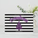 A fun Christmas Party Invitation featuring a purple Christmas tree with skulls all over, black and white stripes and a place for your friendsmas party details. Merry Creepmas!