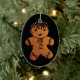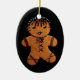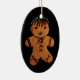 This holiday ornament featheres a gothed up gingerbread cookie