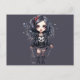 Gothic Girl Black and Grey Halloween Holiday Postcard
