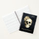 Stylish and Chic Gothic Floral Skull Personalized Notebook . Design features a white skull accented with a beautiful white roses on a black texture background. Personalize with your name and year