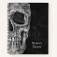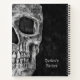 Gothic macabre black and white grunge texture print half skull head spiral Recipes cookbook notebook. Spooky, creepy, evil, sinister design. Custom typography. Cool, trendy, unique, modern, scary Halloween style. Image copyright Marg Seregelyi Photography.