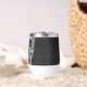 This cool Gothic wedding theme thermal wine tumbler fetaures a Macabre grunge texture black and white printed half skull head. Spooky, creepy, evil, sinister. Custom, trendy, unique, modern, scary Halloween design. Image copyright Marg Seregelyi Photography.
