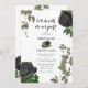 A Gothic Halloween script wedding design with black roses and hanging vines. A white Halloween design that uses black and dark botanical florals along with vintage script calligraphy typography. A stylish Gothic design ideal for Halloween wedding themes. A unique black roses wedding invitation design. Matching wedding stationery items and other wedding invite formats are also available.