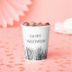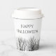 Happy Halloween party gothic paper cups, with spooky typography lettering and a scary black and white design. A great addition to your Halloween or autumn party celebration.