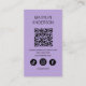 The lavender and black palette adds sophistication, while the spacious layout is perfect for including a scannable QR code that leads clients directly to your website, social media, or booking page. This card isn't just a means of sharing contact details; it's a professional and stylish extension of your brand.