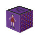 This awesome Halloween photo cube features a digital art image of a creepy but beautiful Halloween Vampiress. The female vampire has long spiky black hair and is wearing a red dress adorned with a spider and decorated with black skulls, stars, diamonds and pair of black swans. She has bright red lips covered in lipstick and a sultry smile and long white fangs. She also has black fingernails, a blood red bracelet of rubies and black high heel boots with gold bows on them. Her arms are open welcoming you for an evil embrace. There is custom text on the top so you can include your own message.