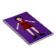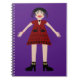 This awesome notebook features a digital art image of a creepy but beautiful Halloween Vampiress. The female vampire has long spiky black hair and is wearing a red dress adorned with a spider and decorated with black skulls, stars, diamonds and pair of black swans. She has bright red lips covered in lipstick and a sultry smile and long white fangs. She also has black fingernails, a blood red bracelet of rubies and black high heel boots with gold bows on them. Her arms are open welcoming you for an evil embrace.