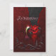 A black damask background with an overlay of deep red damsk, ripped to show the black. On the bottom of the rip a gothic style heart decorated with a rose weeping red tears. A red and cream hummingbird flying behind the heart, and black swirls decorating the bottom. A unique, unusual design - not just for an engagement party. Customise the text on the black damask back to fit your occasion.