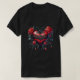 I give wanted to give this a 4 instead of a 5 because these Basic DARK T0shirts run unexpectedly SLIM or Narrow. Which is great if you do not have a potbelly, but I have a paunch. It isn't the shirt's fault that I've got a beer belly. The design and shirt itself is a quality cotton shirt. The color is more of a deep purple, but still a very pretty color. The Basic DARK T-shirts run a bit SLIMMER than the Basic Ts. The neck is a fraction narrower (or seems to be narrower) also. I'm a paunchy middle-aged woman and my neck is 12 inches (31cm) thick and the neckline fell about the same as in the photo of the man, and I had the desire to tug it a bit. So if you're a thick necked man or like loose shirts, be aware these are slimmer shirts. Once I get rid of my lockdown paunch it'll look great. The shirt washed well in cold water with no apparent bleeding. We don't have a dryer, so it hung dry. Did not shrink. Love the colors and the design. The design looks smaller on my shirt than it does on the model on-line. But still, it looks good on the shirt. The printing looks as it does on the model, just the size seems fractionally smaller. Washed garment in cold water, hung dry and design appeared unaffected.