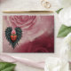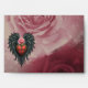 Gothic Heart with Bloom and Wings. The heart shines in vibrant red and is surrounded by an elegant golden border. The heart is decorated with a delicate cross pattern that underscores its meaning and symbolism. A delicate pink flower sits atop the heart, adding a touch of romance and softness. Majestic wings, painted in dark grey, spread out from either side of the heart. The wings are detailed, with fine lines and shading that give them a slightly gothic feel and convey the impression of protection and freedom.