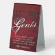 This table tent sign is the perfect size for our tables and easy to read. I also like the material it is made with and no worries about it falling or sliding. Just perfect! Everything about this card is perfect. I like that it says what we want on the front and on the back we were able to personalize a message for our guests.