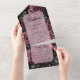 This invitation features gothic roses in mauve, grey and black. It is uniquely different and appropriate for formal and semi-formal affairs. The All-in-One wedding invitations are both beautiful and practical by combining the wedding invitation with an easy to remove perforated RSVP postcard. They are also quick and easy to prepare for mailing. Simply address the invitation, fold the back flap and seal with the included clear stickers. Once your guests receive the pre-addressed invitation they simply tear off the perforated RSVP card and drop it in the mail. The addition of the QR code allows your guests to easily access your wedding website for information including reception details and dinner choices!