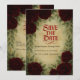 This richly detailed safe the date wedding invitation features deep red roses framed by antique textures and mediaeval-inspired elegance. Perfect for weddings with a gothic or vintage aesthetic, it evokes a sense of timeless dark romance with its parchment tones and classic floral composition.