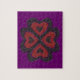 This awesome puzzle features a beautiful digital image of a gothic black and red heart with ragged edges that shine with an ethereal light and appear to be melting. The background is purple.