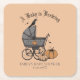 A gothic hand-drawn gender neutral Halloween "A Baby is Brewing" Fall baby shower design in black ink. Features an antique baby carriage, black crow and pumpkins on an elegant white background. Name & Event and Date are editable.