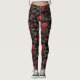 Gothic Pattern with Red Roses and Crows Leggings
