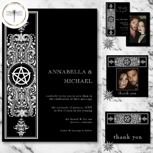 Gothic Pentagram Stat Black White Photo Wedding Save The Date